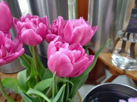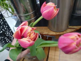 当店でつるしておいたドライフラワーを束ねて作っています。