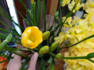 左はフリージア、右がイエローのスイトピーです