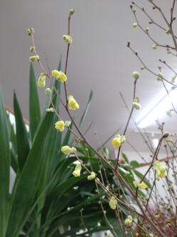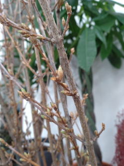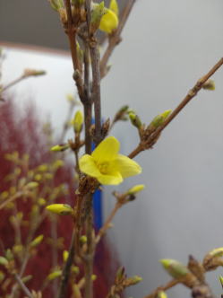 左がレンギョウの花、咲いたところです