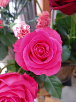 左はローズピンクのバラ。